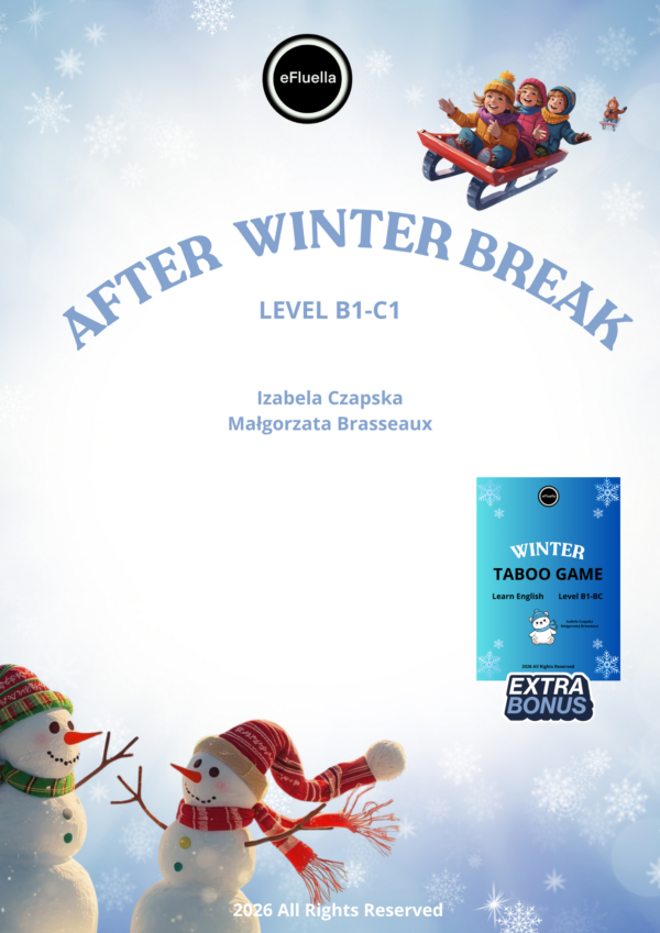20.00złTwoi uczniowie mają problem z opowieściami z użyciem czasów przeszłych? A może po prostu potrzebujesz dodatkowych ćwiczeń do egzaminów ustnych? Jeśli tak, mamy dla Ciebie coś mega fajnego. TELL ME ABOUT… – to zestaw 40 pytań, które umożliwią Twoim uczniom wykazanie się kreatywnością oraz doskonalenie tworzenia rozbudowanej wypowiedzi z użyciem czasów przeszłych. Idealne zadanie dla uczących się od poziomu B1 wzwyż.
